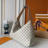 This elevated edition of the Slouchy MM, showcases the House’s Damier Azur motif as a graphic allover signature. Functional and sophisticated, it is crafted from canvas with a unique pattern that has been created using heliogravure printing. It is accented with a signature padlock name tag and holds enough space inside for work-to-weekend essentials.