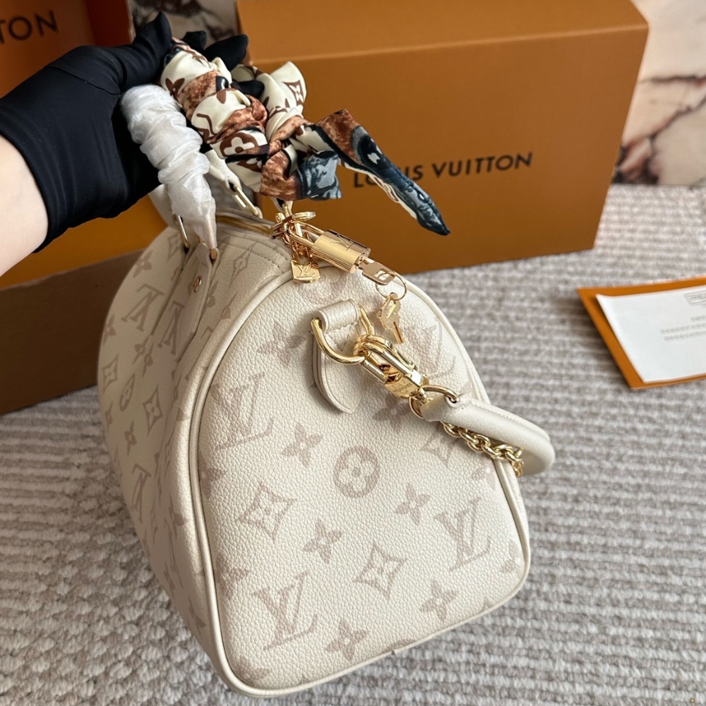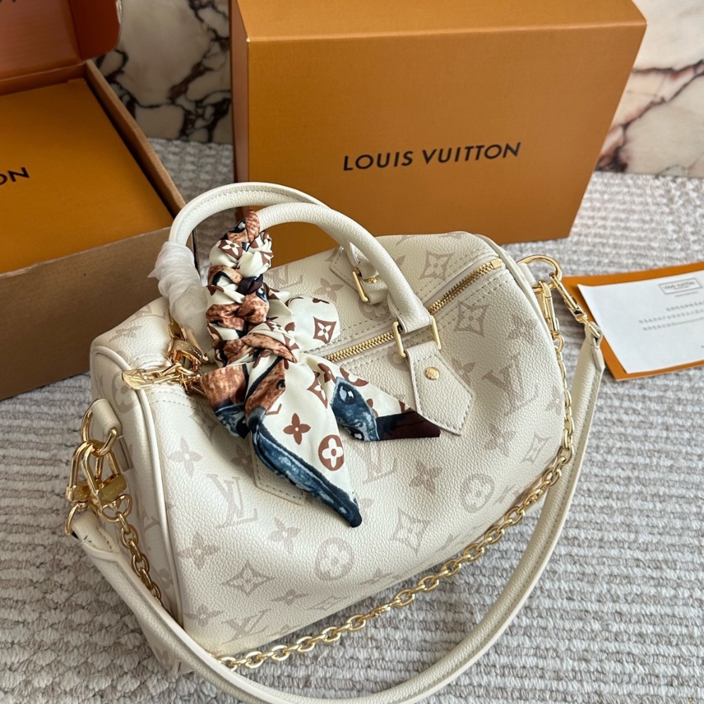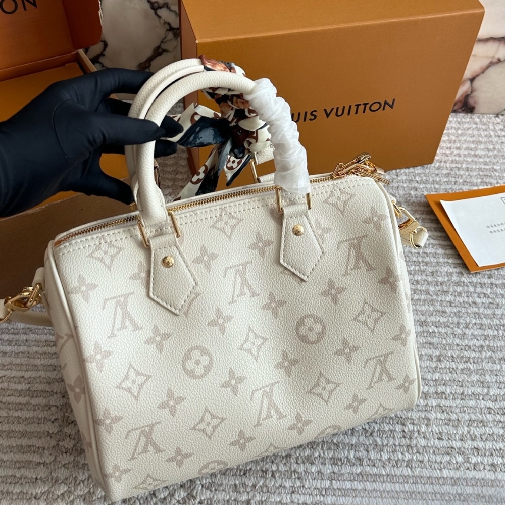 The LV Bliss collection reimagines the iconic Speedy Bandoulière 25 in ultra-supple leather. Designed to have a cushion-like finish, it is patterned with the House’s signature Monogram using a triple-layer digital printing technique. The contemporary sty