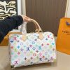 The Speedy Soft 30 is reimagined for the anniversary collection of the Louis Vuitton Monogram, marking 130 years of the iconic House signature. This Multicolor edition is crafted from canvas including a removable bow-tie charm that offsets the gold-toned padlock. It is generously sized to fit everyday essentials and opens to reveal a celebratory leather patch, exclusive to this collection.
