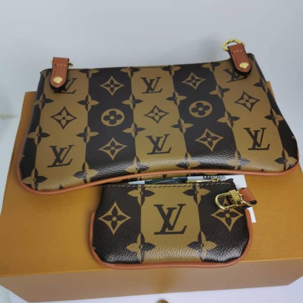 The Trio Messenger bag for men is made from Monogram canvas and its mirror twin. The iconic motif in tone-on-tone shades of gray complements the lines of this functional hybrid. More than a traditional cross-body bag, it has a removable zipped pocket and a removable coin purse attached to the strap