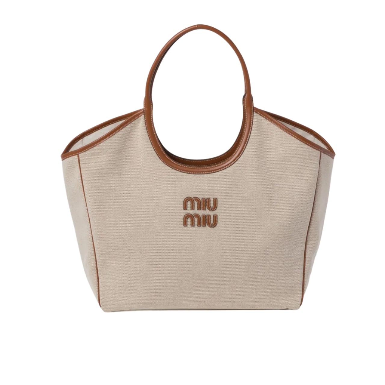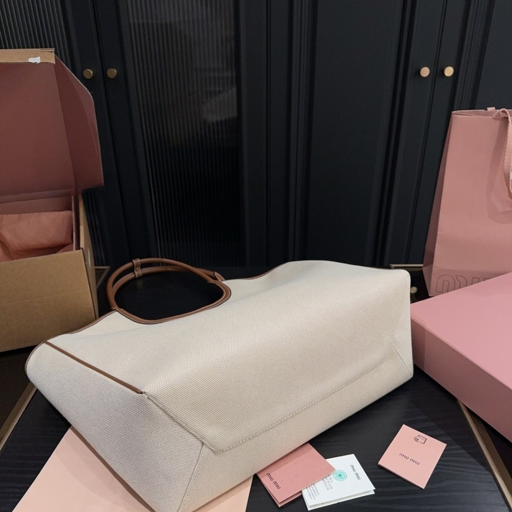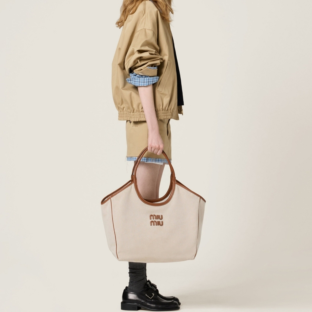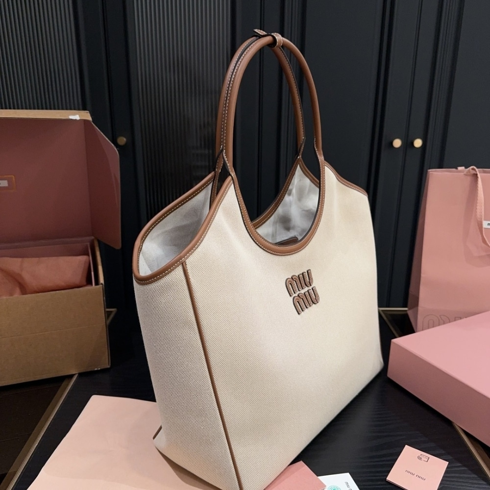 1:1 Replica Bag – Miumiu Large Ivy Canvas And Leather Bag Beige And Brandy 37Cm 5BG286 2CRN F062F V OOO