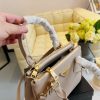 The Prada Galleria bag, which exemplifies Prada’s centennial excellence in luxury leather goods, becomes a reflection of the brand’s modernity and stylistic identity that seeks to interpret kaleidoscopic contemporaneity through a pragmatic design and structured lines. The accessory, presented in the small version, is made of iconic Saffiano leather that was patented by the founder of the brand and features a crosshatch texture and waxed finish.