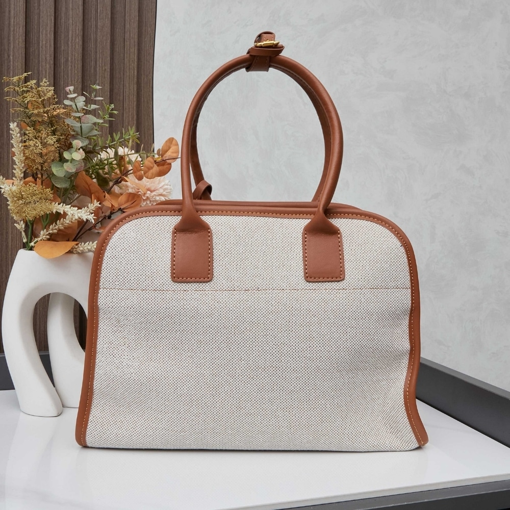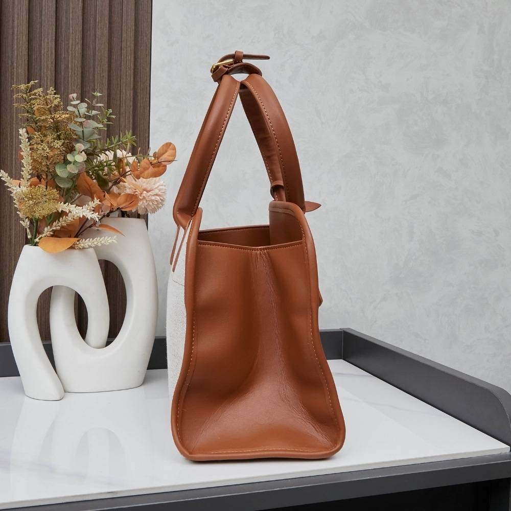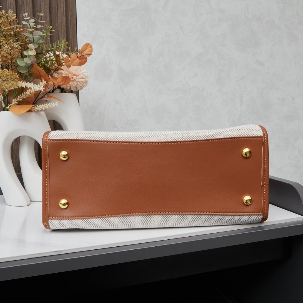 Prada Medium Blend And Leather Tote Bag Tan And Caramel 33Cm 1Bg572 2Hja F0Kfz V Ooz