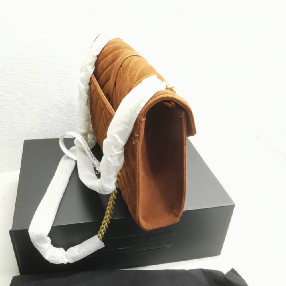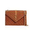 Saint Laurent Envelope Medium Matelassé Suede Shoulder Bag Brown 24Cm
