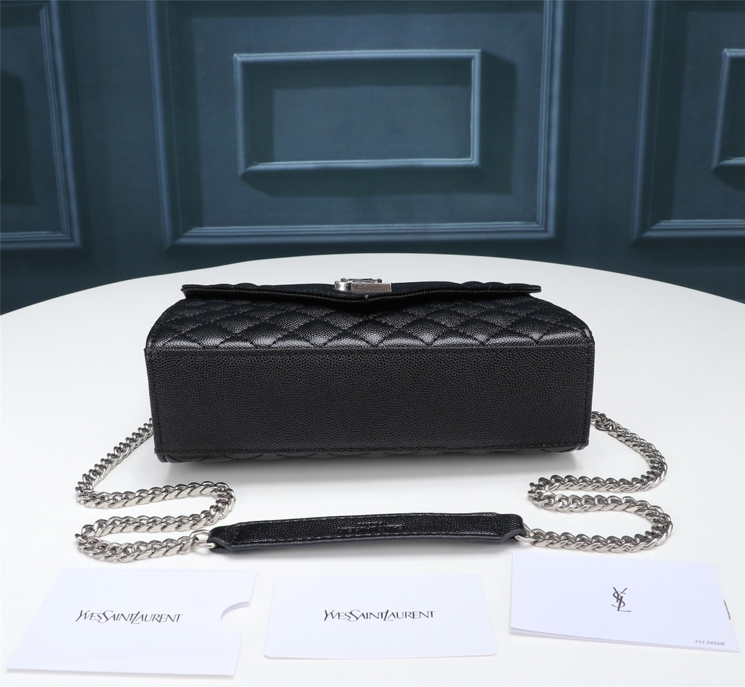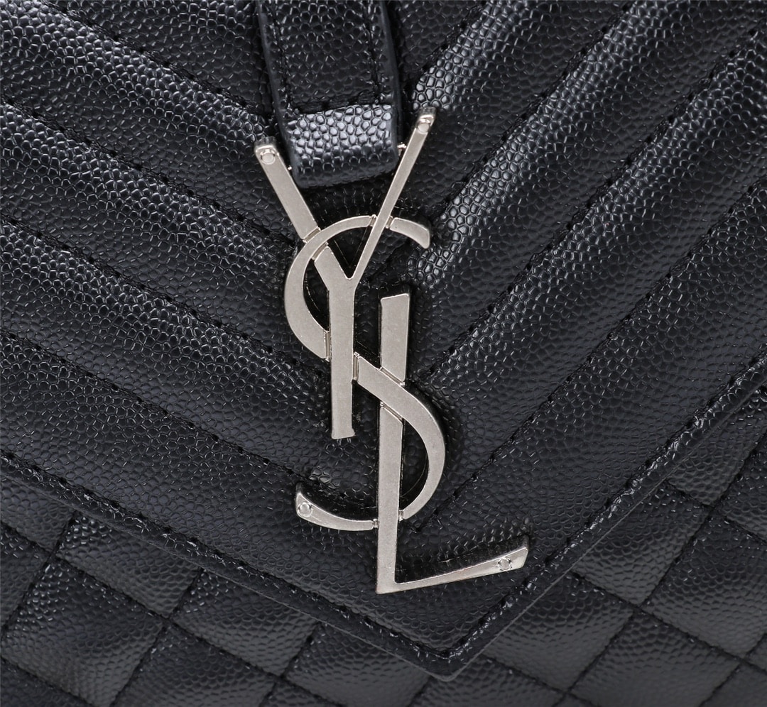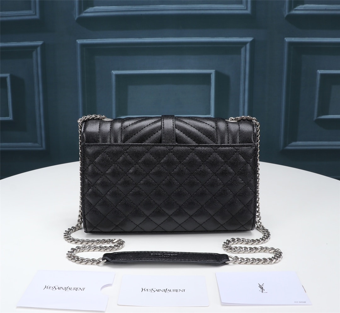 1:1 Replica Bags – Saint Laurent Envelope Small In Quilted Grain De Poudre Embossed Leather Black Silver 21cm 600195BOW921000