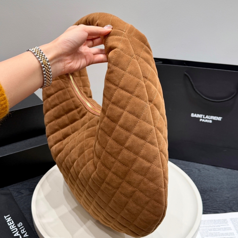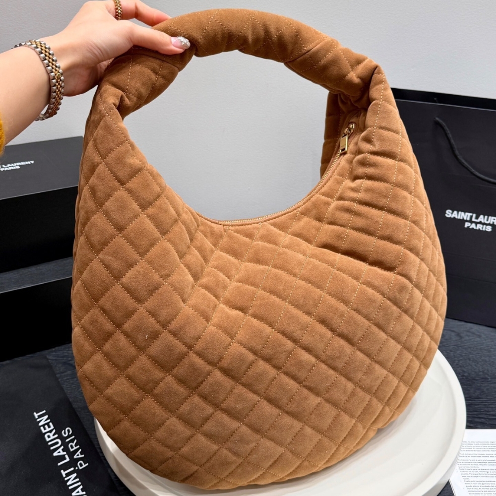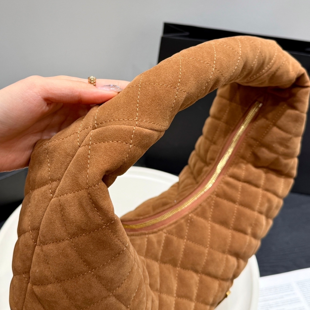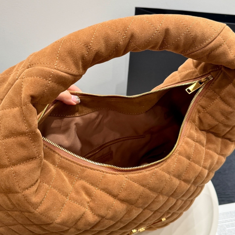 The hobo version of the iconic Icare, brown decorated with quilted topstitching. This modern, spacious bag allows for multiple carry options.