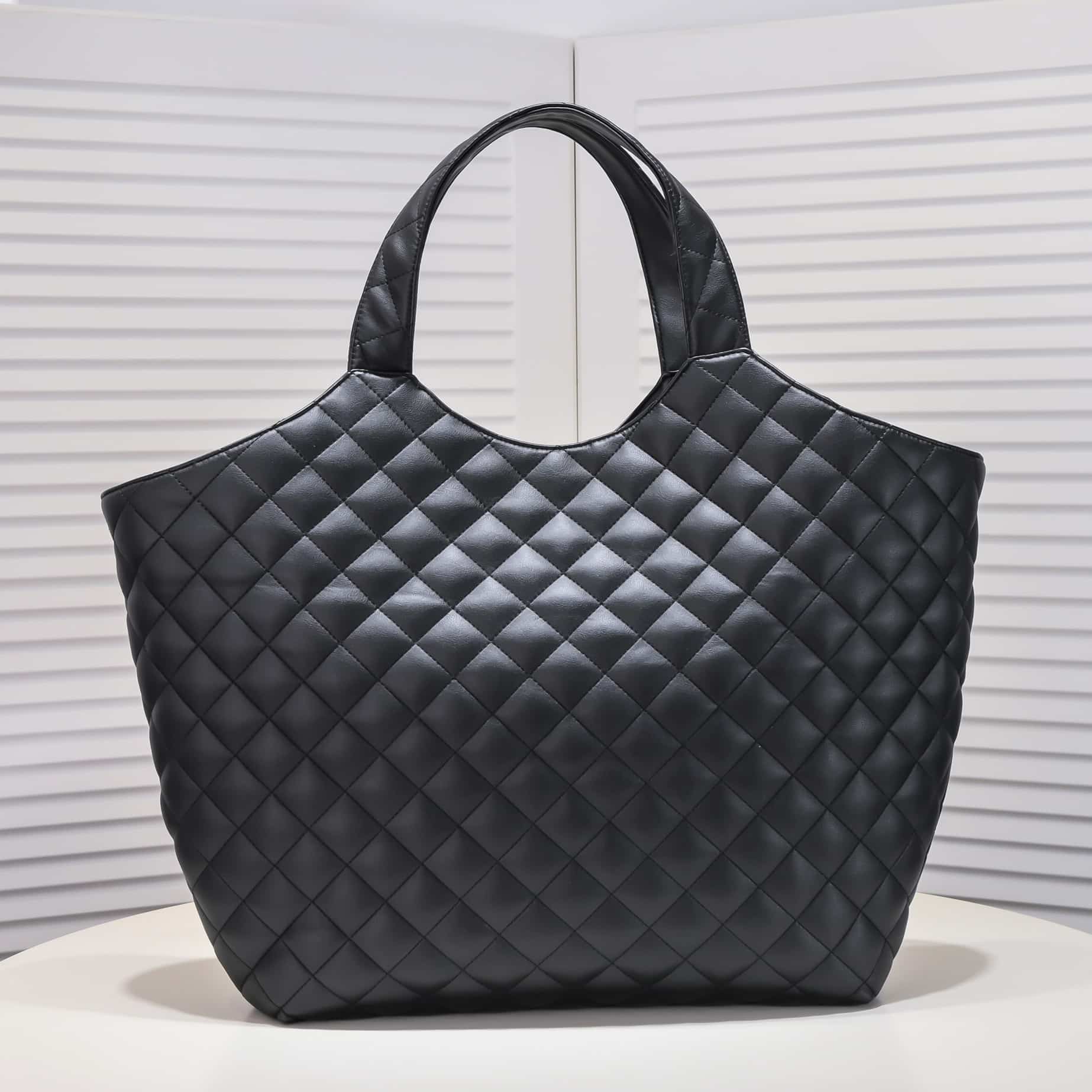 Maxi shopping bag with toggle closure, featuring a removable zipped pouch, decorated with carré-quilted overstitching and the new sculpted jewel CASSANDRE.