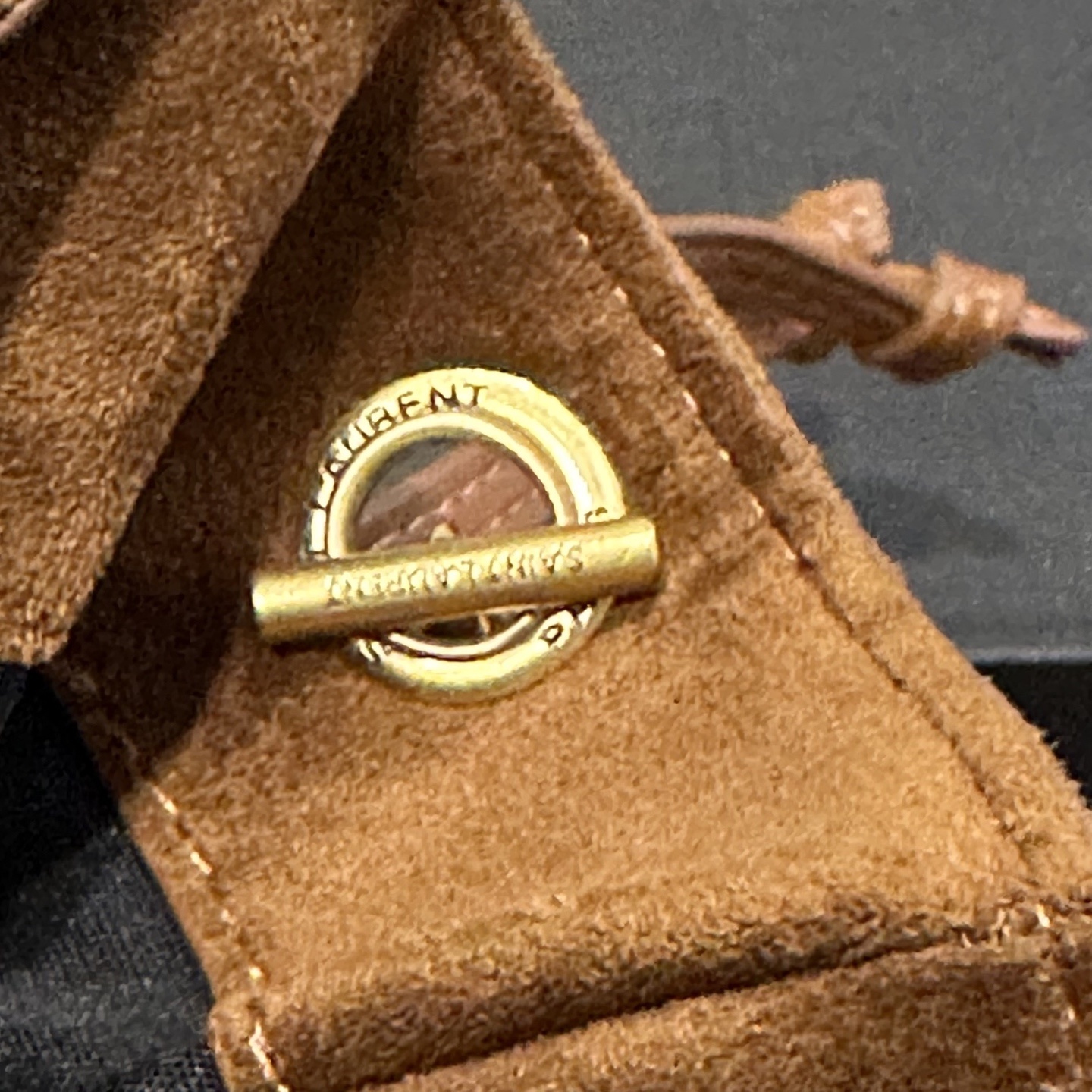The shoulder pouch version of the JAMIE, decorated with the CASSANDRE and CARRÉ RIVE GAUCHE topstitching. This lightweight and compact bag features a chain strap for crossbody carry. Drawstring ties allow the sides to be cinched or expanded to create different silhouettes.