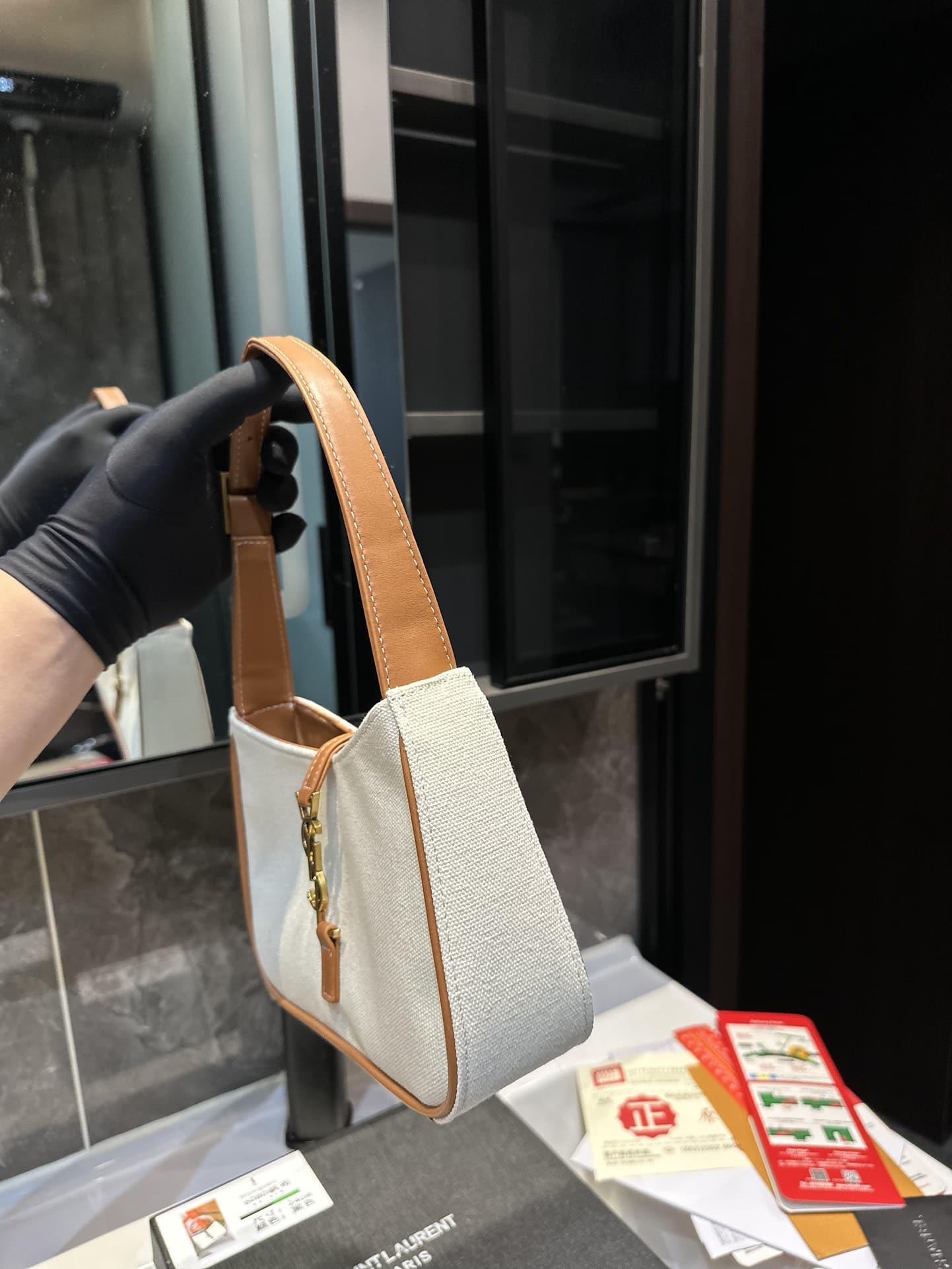 Saint Laurent Le 5 À 7 Linen Canvas Hobo Bag White And Brown 25Cm 657228Faavh