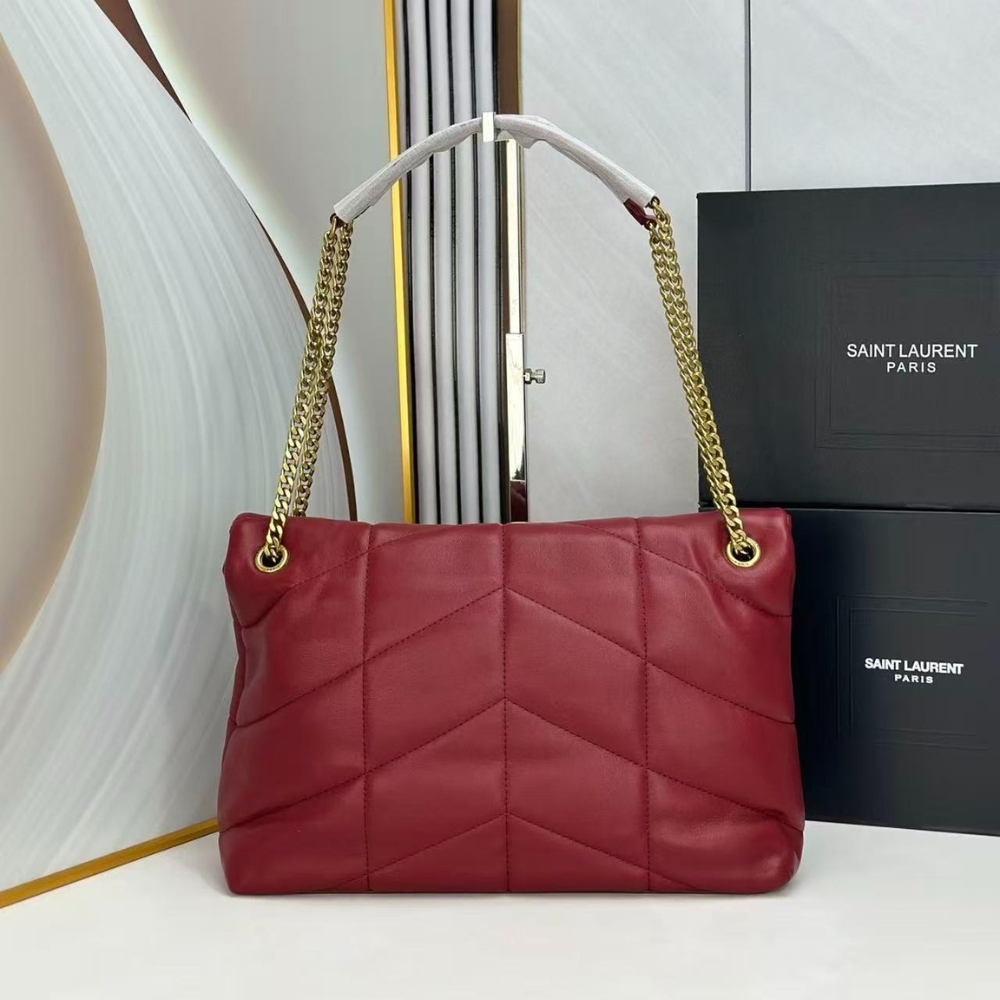 The Iconic Loulou In Puffer Version, With Chevron Quilt Overstitching. Featuring A Sliding Chain Strap That Can Be Worn On The Shoulder Or Crossbody.