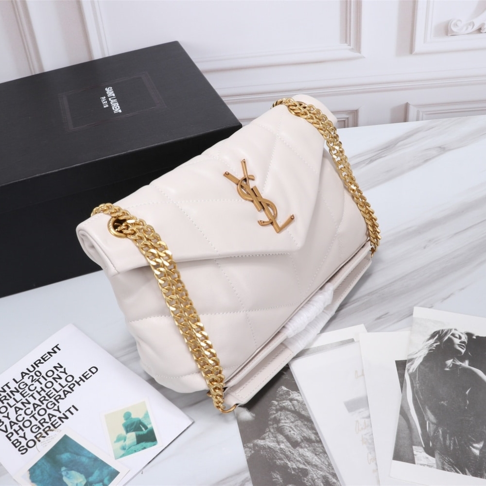The Iconic Loulou In Puffer Version, With Chevron Quilt Overstitching. Featuring A Sliding Chain Strap That Can Be Worn On The Shoulder Or Crossbody.