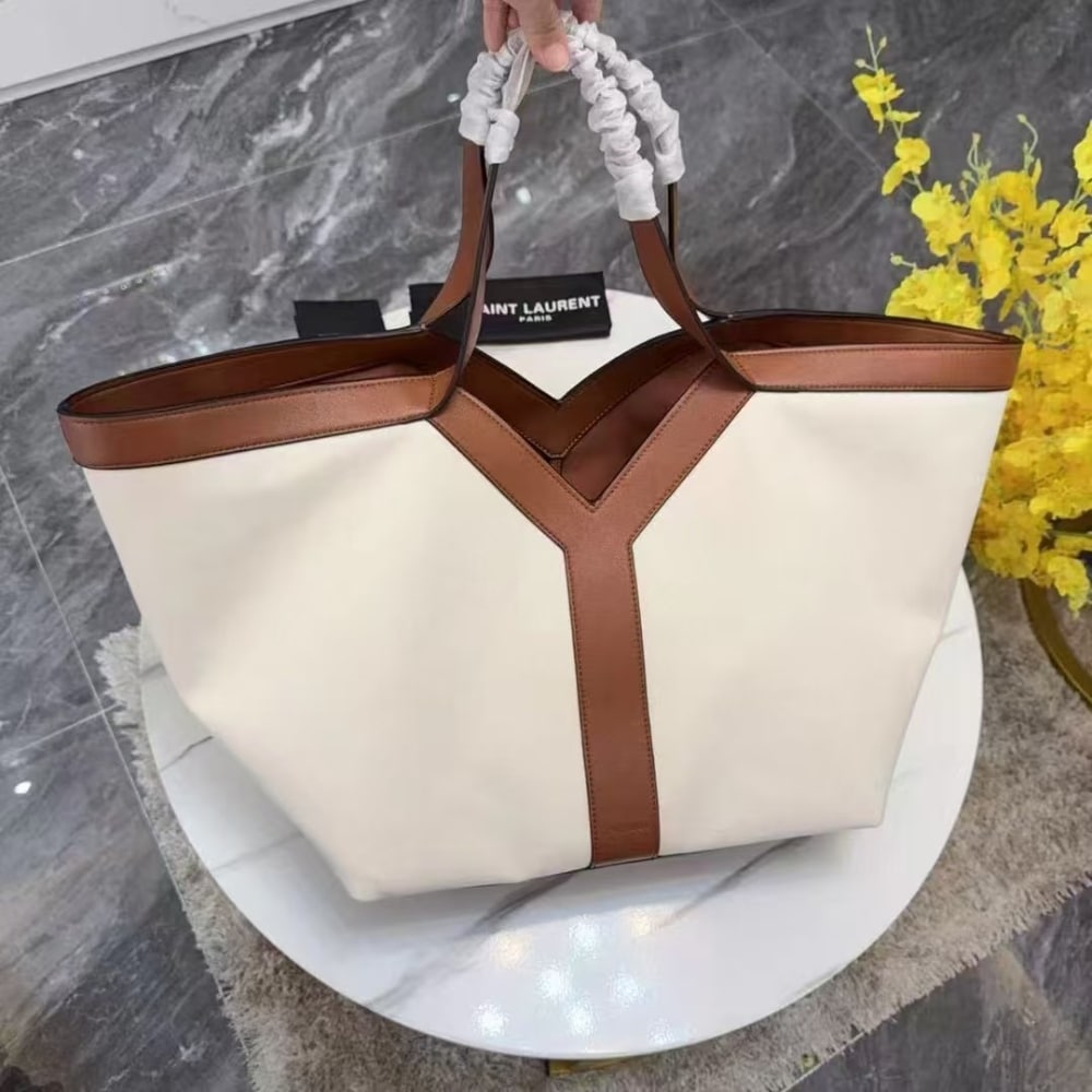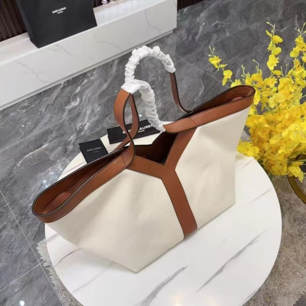Saint Laurent Y Tote In Canvas And Leather Bag Beige 37Cm 817602Fac7T9856