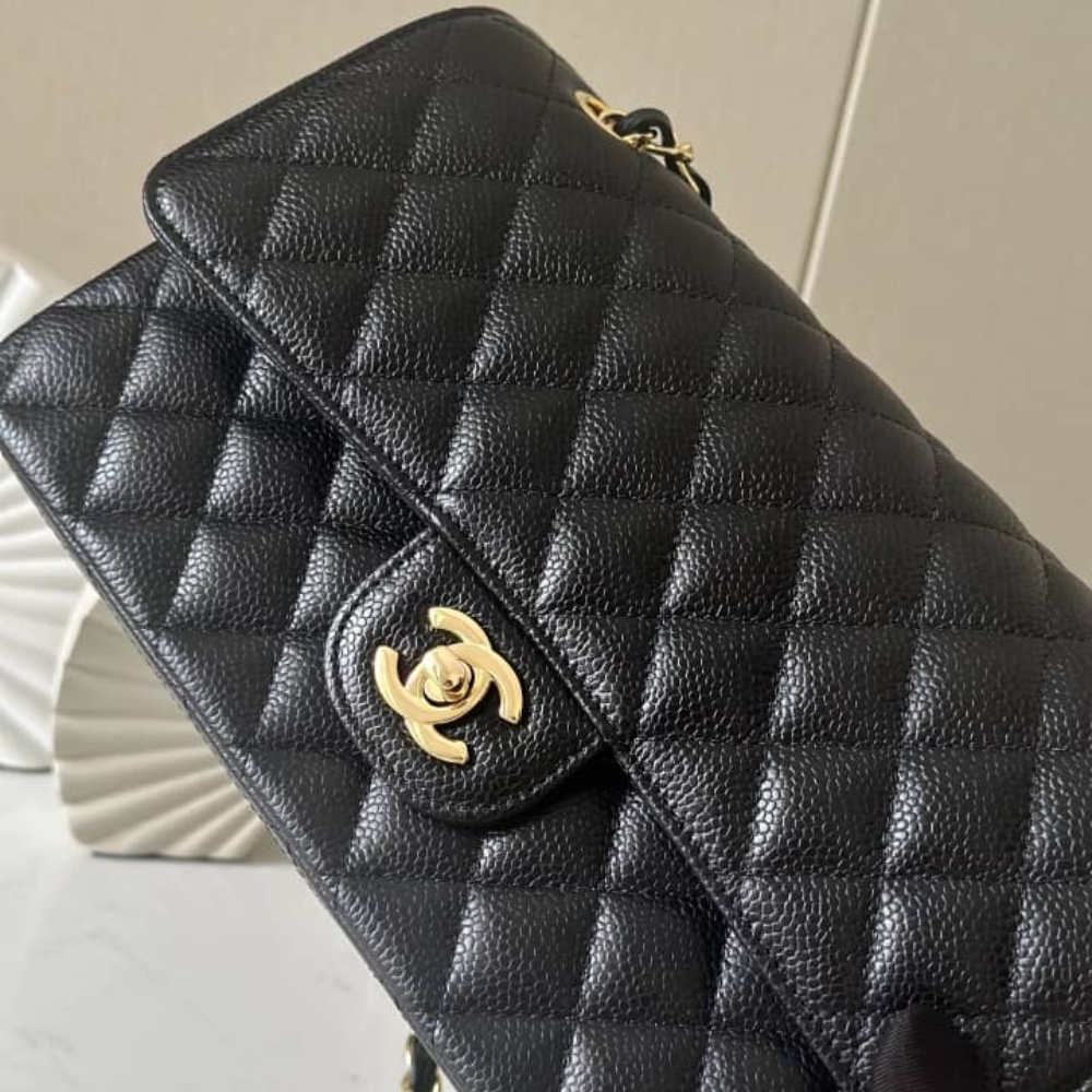 [Super Vip 1:1] Chanel Medium Classic Handbag Grained And Gold Tone Metal Black 25Cm A01113 Y01864 C3906