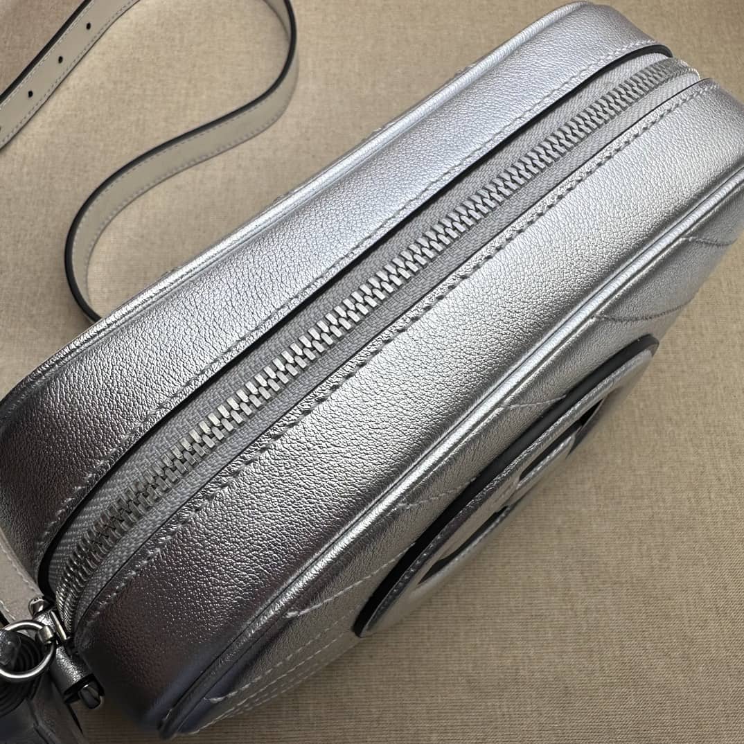 - Metallic silver leather