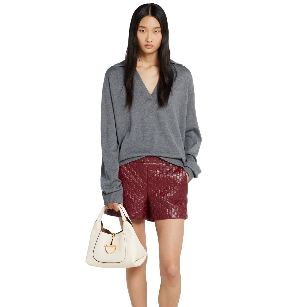 The new Gucci Softbit shoulder bag reimagines the House’s signature hardware as an oversized half Horsebit. It is both aesthetic and functional as the magnetic closure of the relaxed silhouette, crafted from supple, grainy leather with a rich texture.