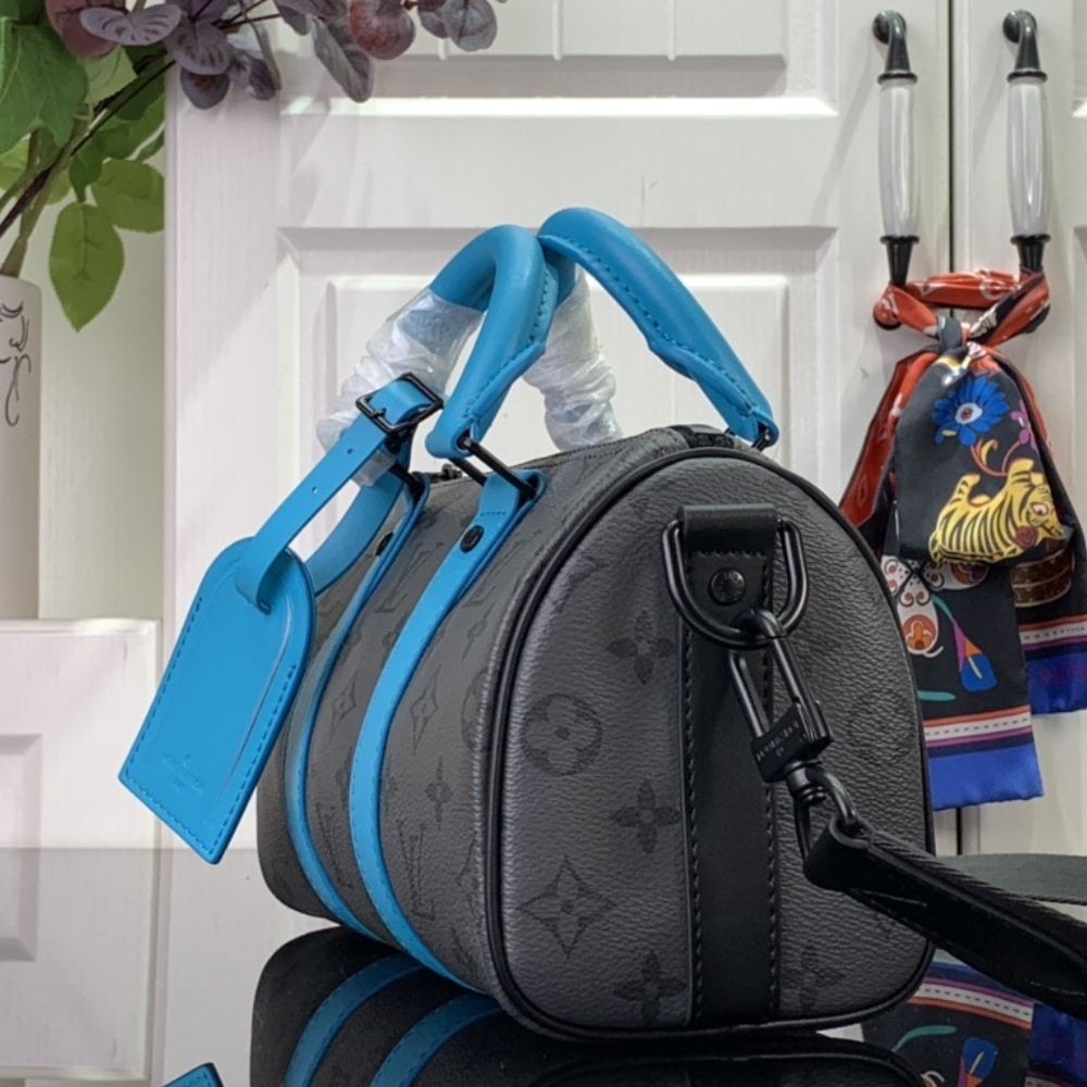 [Super Vip 1:1] Louis Vuitton Keepall Bandoulière 25 Monogram Eclipse Reverse Turquoise 25Cm M11645