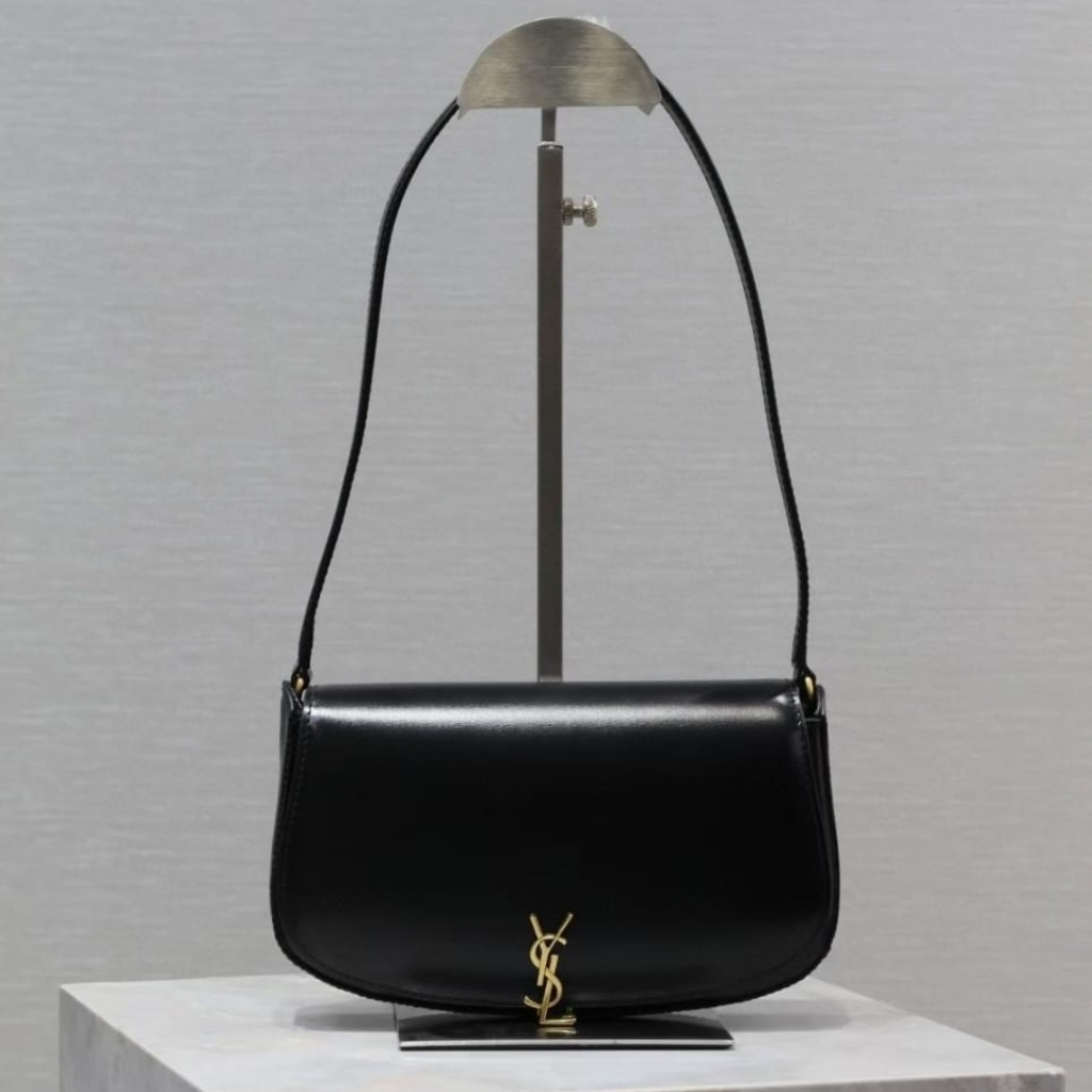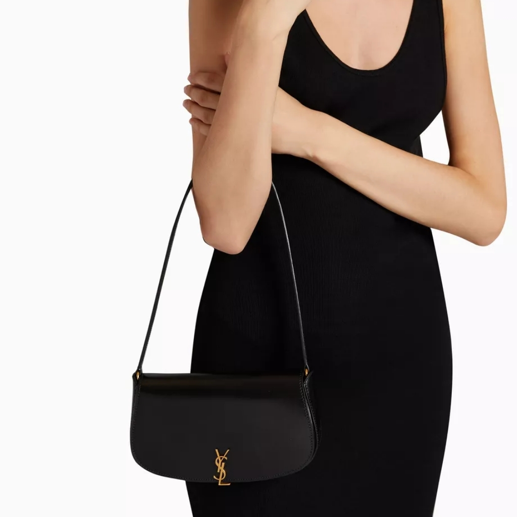 Half-moon shoulder bag in with a gently polished finish. This elegant and modern bag features a flap with magnetic Cassandre hinge closure