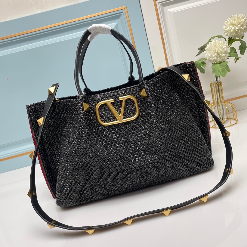 1:1 Replica Bags – Valentino Garavani Medium Straw Summer Tote Black 35Cm