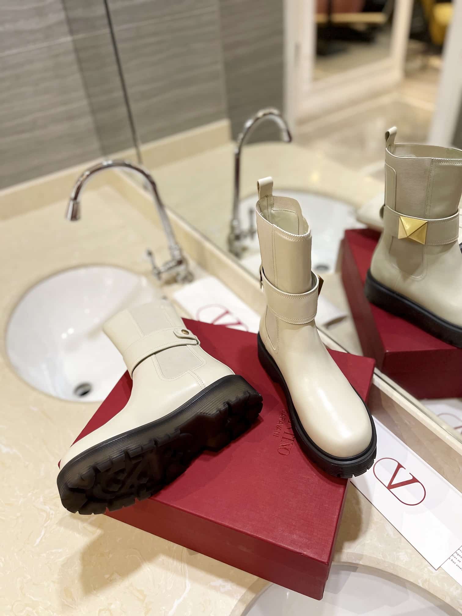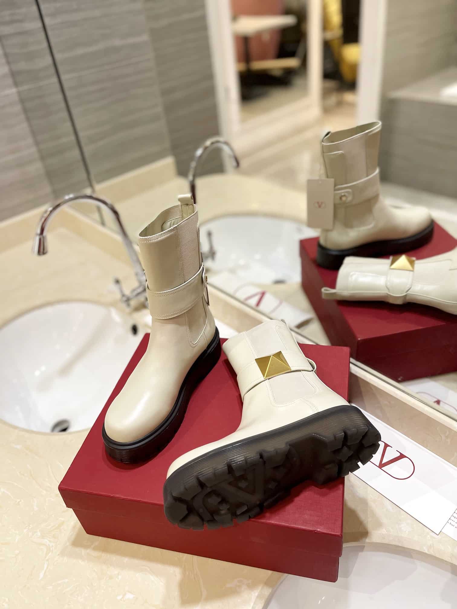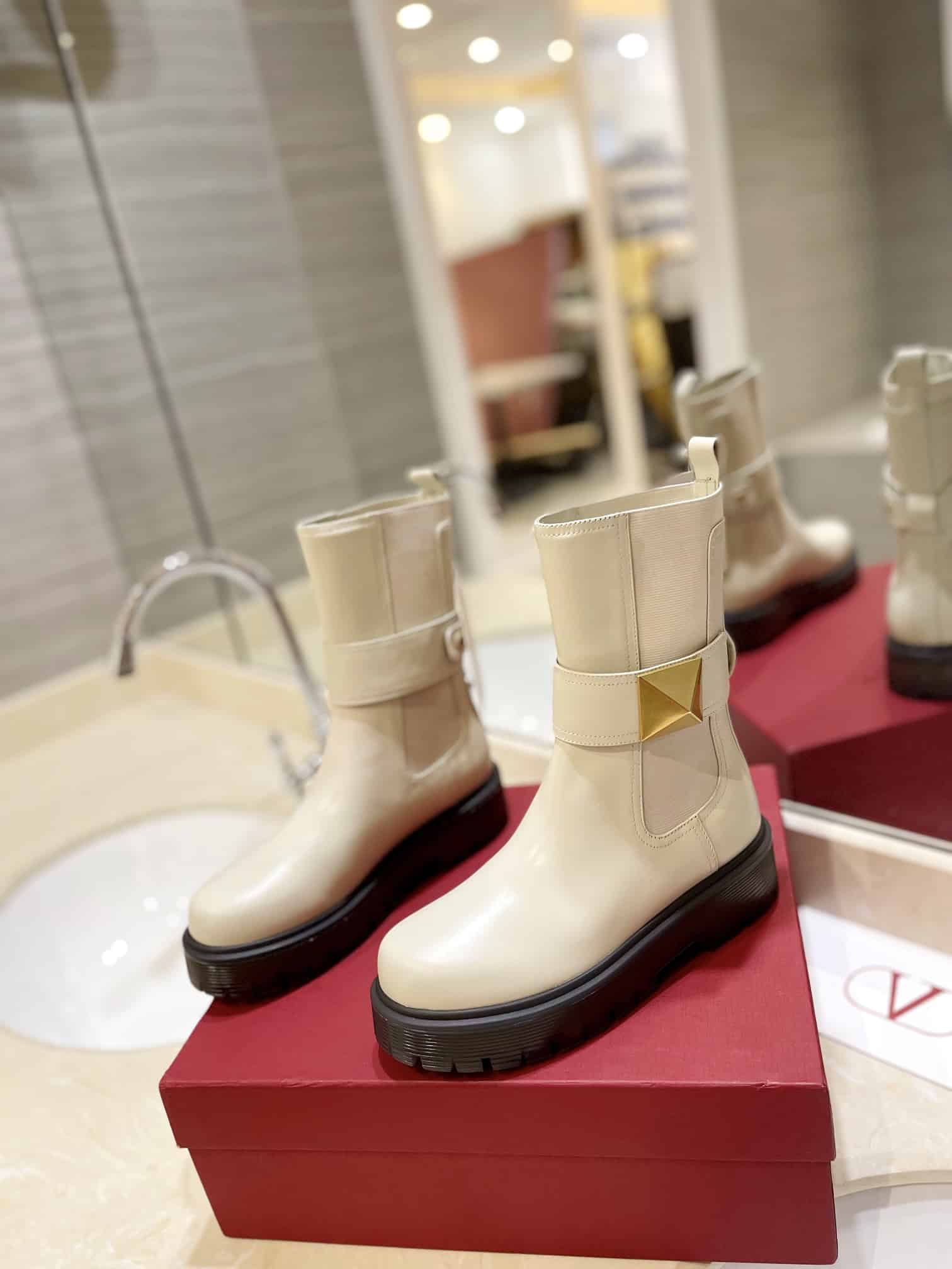 - Valentino Garavani One Stud Beatle Boot in calfskin with maxi stud decoration