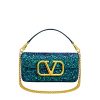 The Valentino Garavani Locò small shoulder bag features a VLogo Signature element and 3D-effect embroidery with leather trim. This accessory is equipped with a removable handle and a detachable sliding chain strap and can be carried as a handbag or worn as a crossbody/shoulder bag.