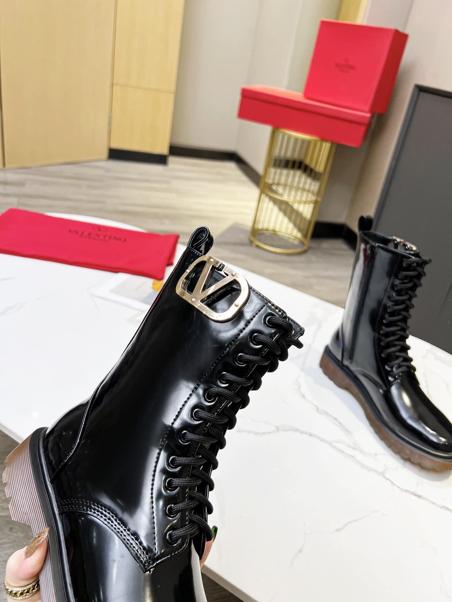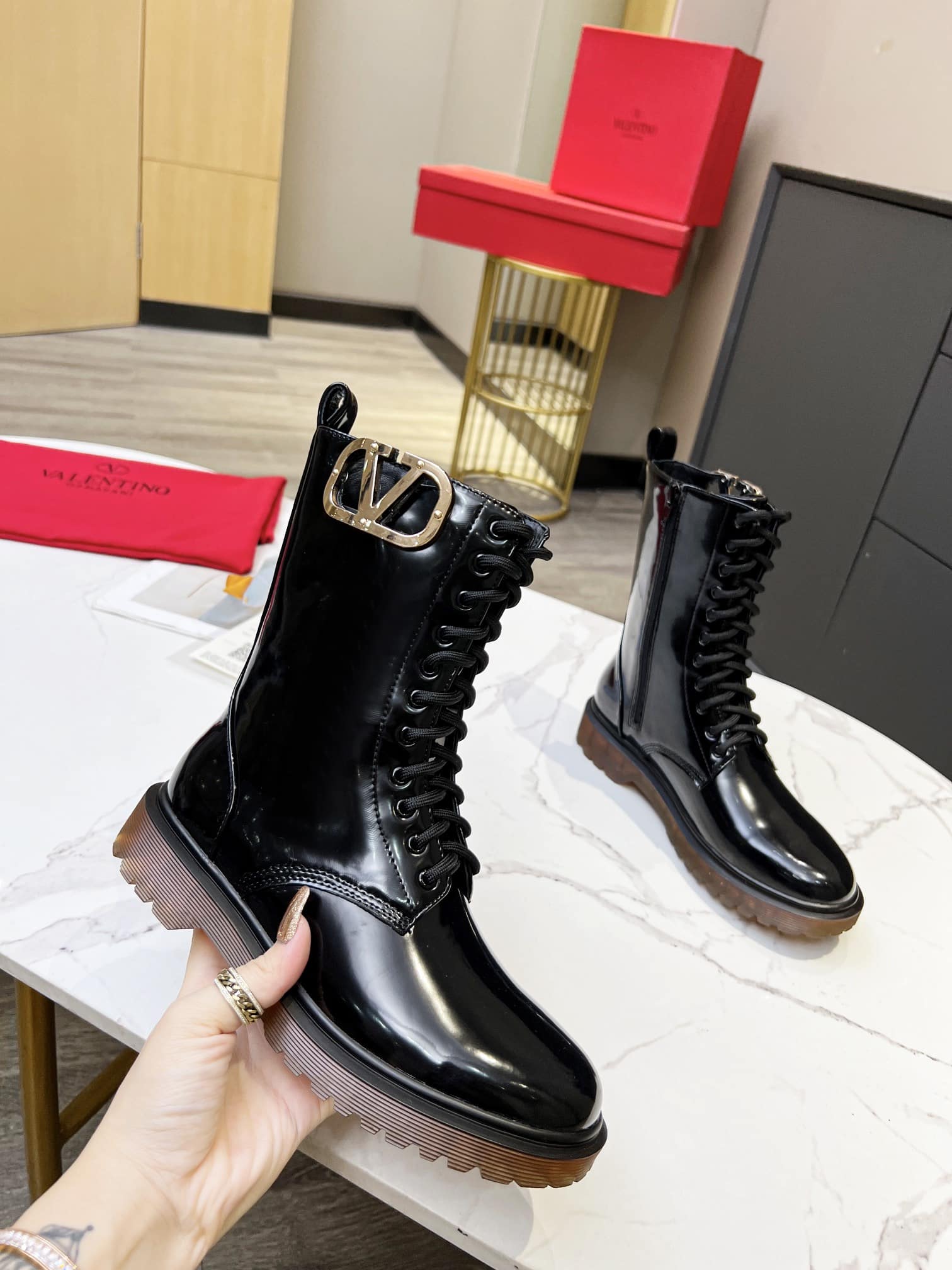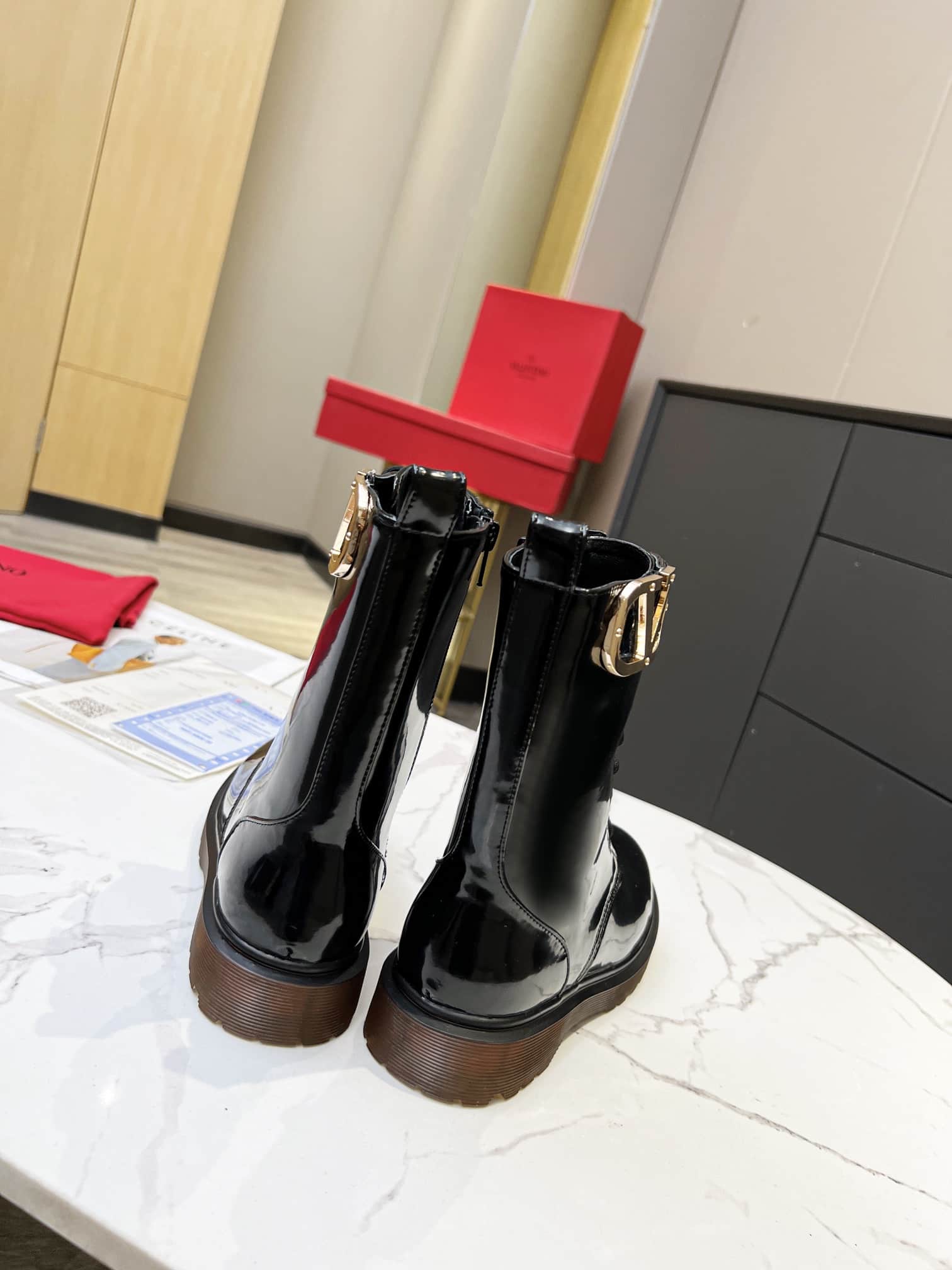 Valentino Vlogo Shiny Black Short Biker Boots