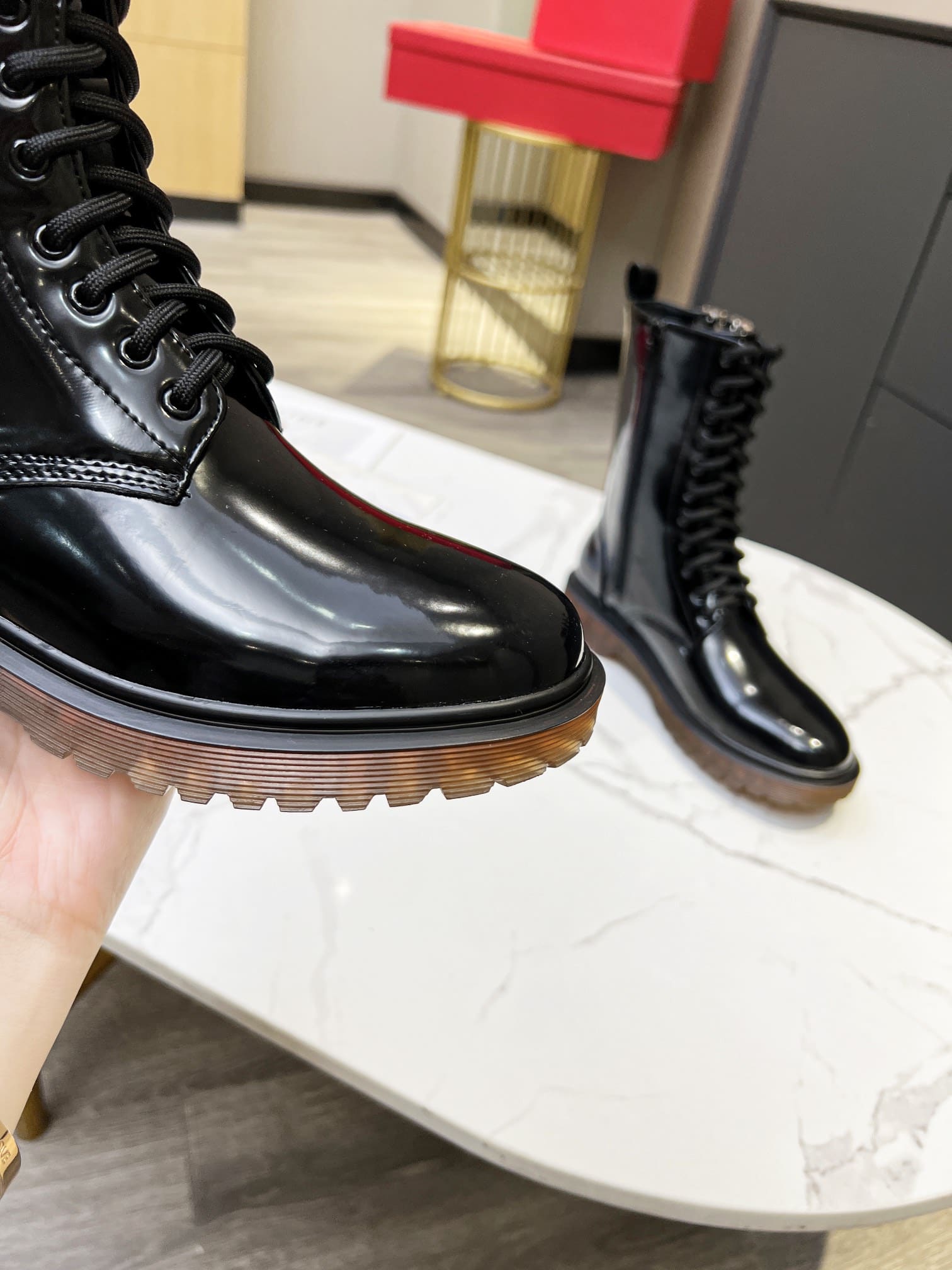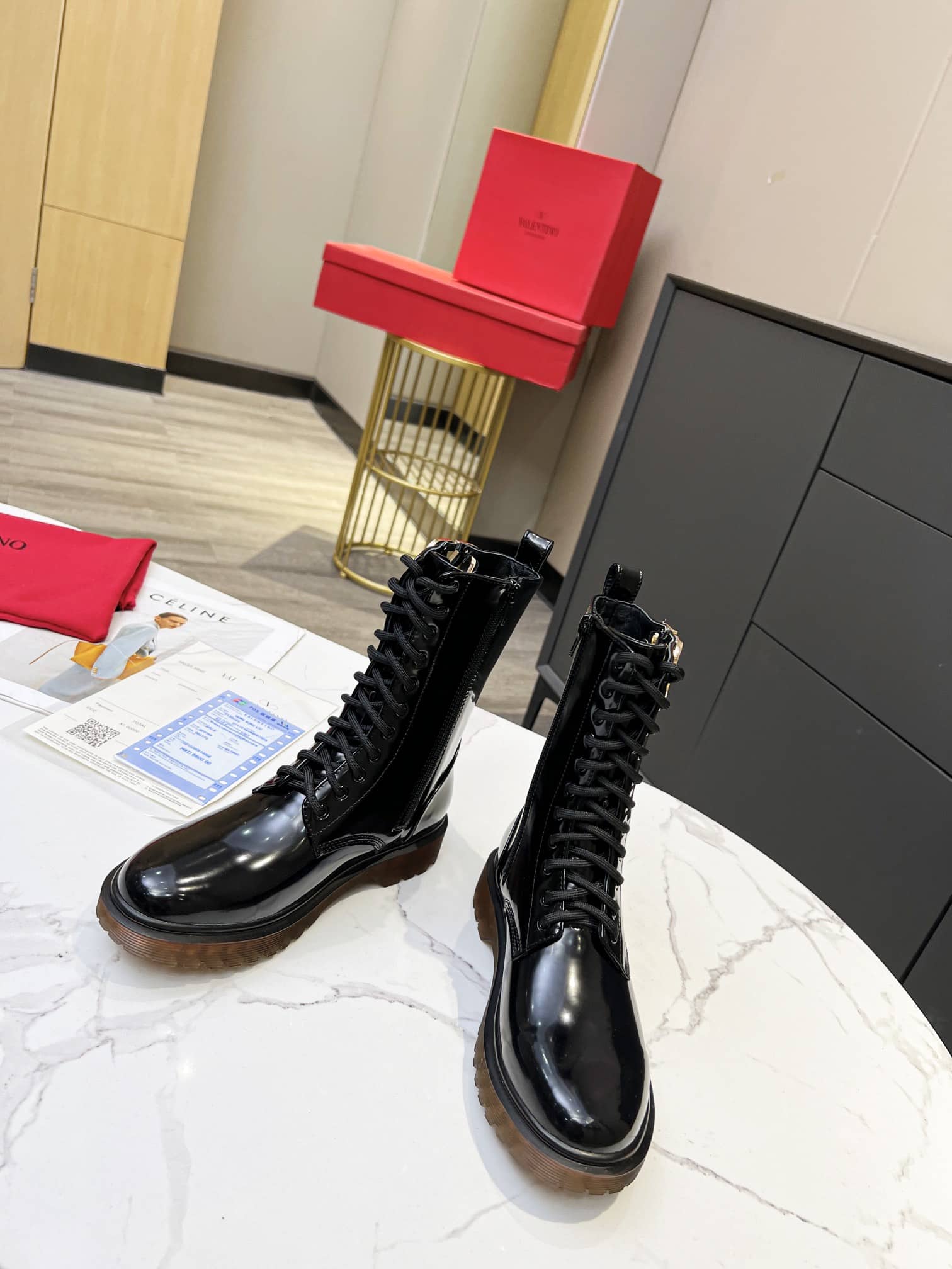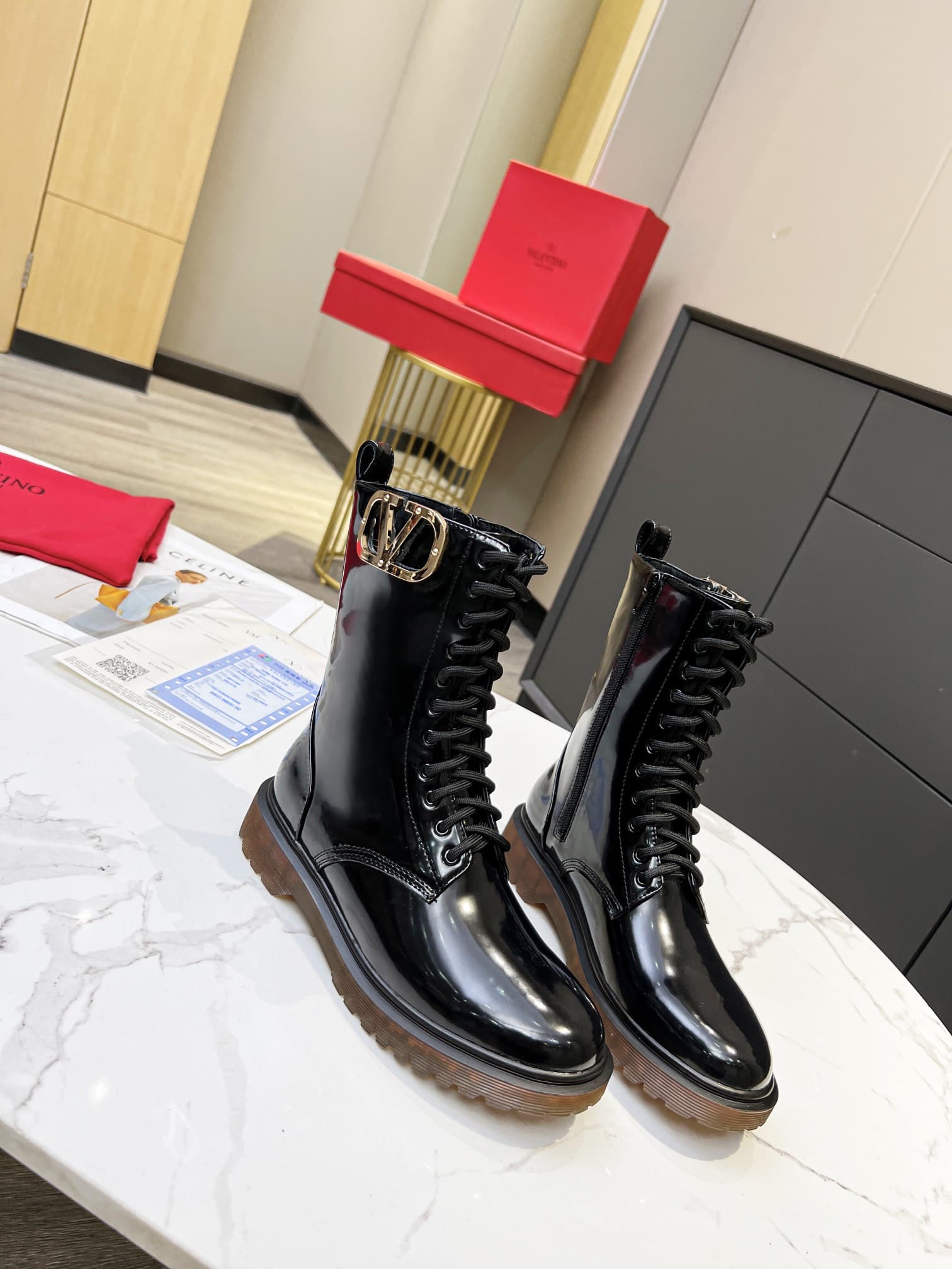 Valentino Vlogo Shiny Black Short Biker Boots